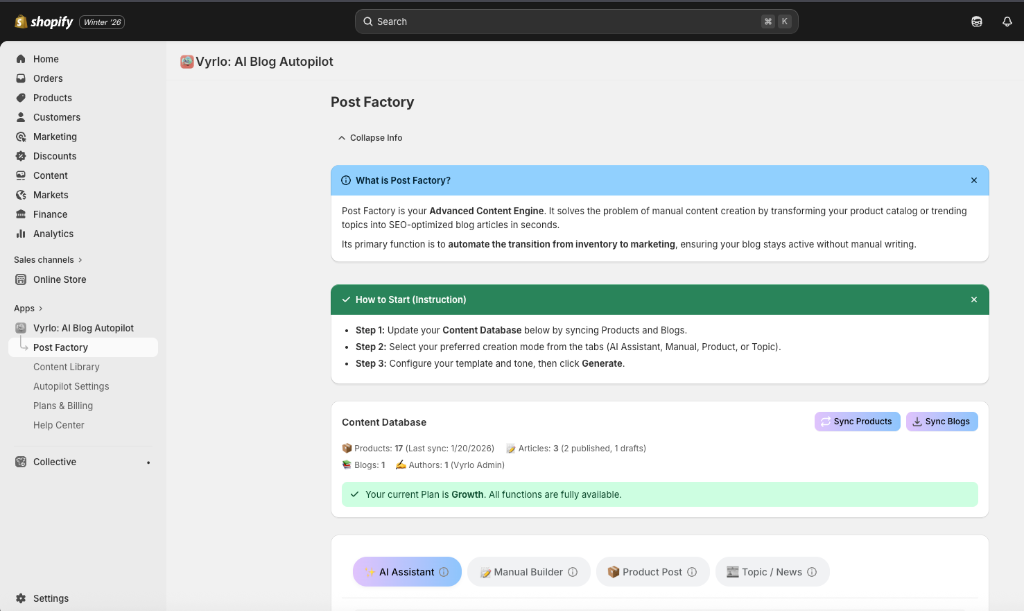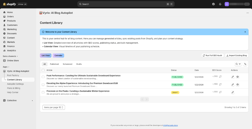 Autonomous Content Marketing for Shopify